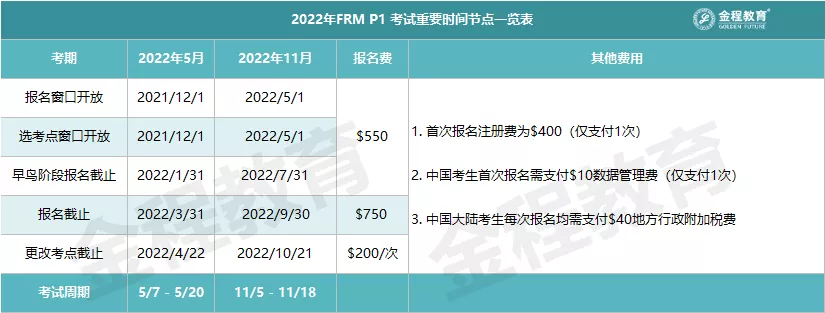 2022年frm金融風(fēng)險管理師報名費(fèi)P1一覽表