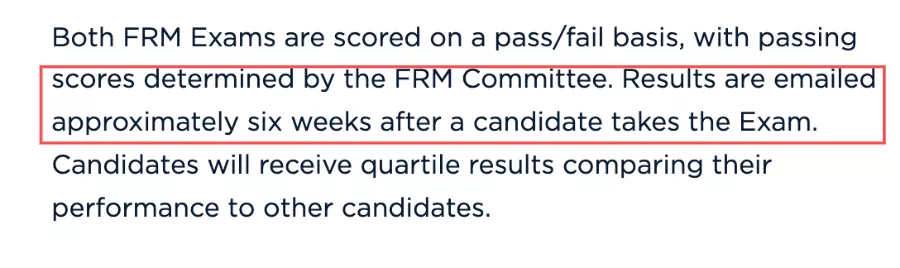 當(dāng)然,雖說(shuō)FRM考試協(xié)會(huì)是不會(huì)明確告訴你是哪一天出成績(jī)的,不過(guò)還是有一個(gè)大致的范圍,一般來(lái)說(shuō),會(huì)在考后6周左右時(shí)間來(lái)公布成績(jī)。