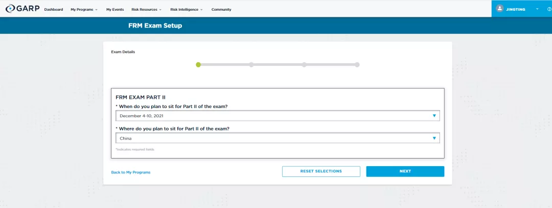 二、進(jìn)行2022年FRM考試地點(diǎn)選擇,選擇考試時(shí)間、考試國(guó)家