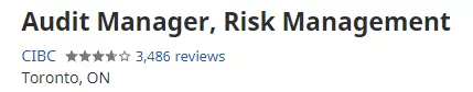 同為加拿大五大行的CIBC的Audit Manager,要求候選人有FRM等職業(yè)證書(shū)。