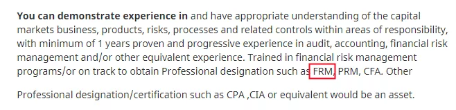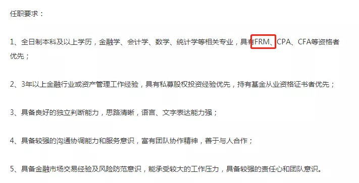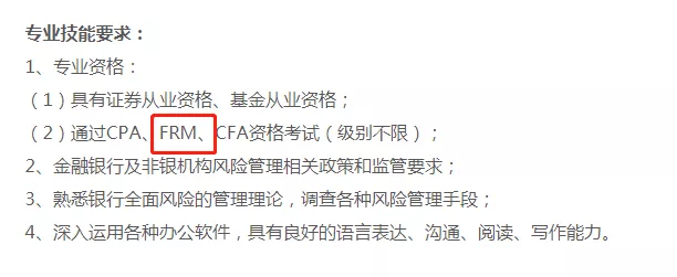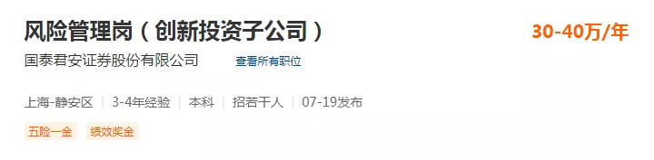 比如說(shuō),國(guó)泰君安的風(fēng)險(xiǎn)管理崗,在JD中就提及會(huì)優(yōu)先錄取具備FRM資格的候選人,年薪可達(dá)30萬(wàn)到40萬(wàn)之間;