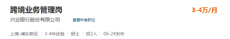 商業(yè)銀行的主營(yíng)范圍是會(huì)計(jì),這一行業(yè)也偏愛(ài)國(guó)內(nèi)風(fēng)險(xiǎn)管理師證書(shū)FRM人才。興業(yè)銀行釋放出的跨境業(yè)務(wù)管理崗,表示針對(duì)通過(guò)FRM的候選人,會(huì)優(yōu)先考慮錄用,月薪高可達(dá)4萬(wàn);