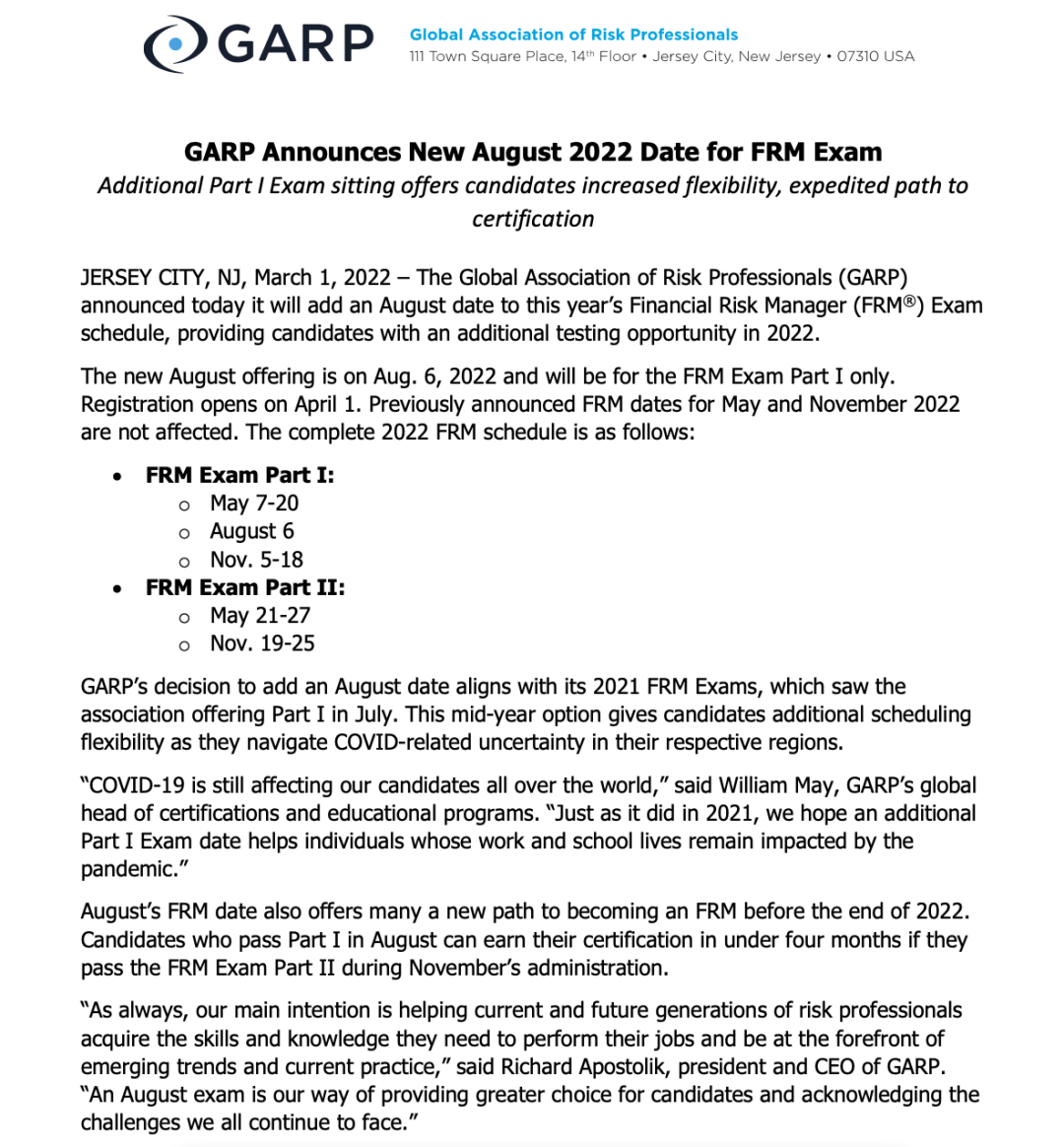 》》點(diǎn)擊了解FRM 協(xié)會最新相關(guān)信息