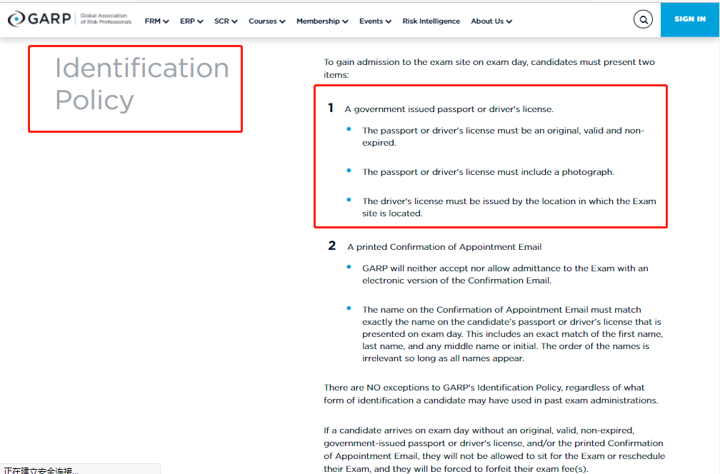 GARP 的身份識別政策沒有任何例外,無論考生在過去的考試管理中使用什么形式的身份識別。