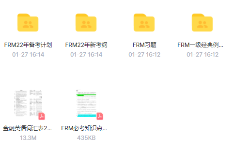 備注:(FRM備考資料包含:1、FRM專用英語詞匯 2、FRM一二級專用公式表3、FRM模擬習(xí)題 4、FRM前導(dǎo)課程5、FRM 報名流程指引圖6、FRM電子版資料 7、FRM考綱 8、FRM筆記)