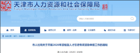 日前,天津發(fā)布了《關于開展2020年資格型人才引進專項資助申報工作的通知》。