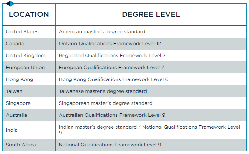 通常來說,擁有海外背景或是行業(yè)相關(guān)碩士學(xué)位的應(yīng)聘者薪資會高于平均水平,根據(jù)英國ENIC(前身為英國NARIC)進(jìn)行的一項(xiàng)獨(dú)立基準(zhǔn)研究,F(xiàn)RM相當(dāng)于十個(gè)國家和地區(qū)教育系統(tǒng)的碩士學(xué)位。