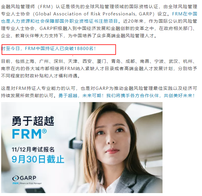 也就是說,在2021年FRM中國持證人已突破18800名!我們可以從報(bào)考人數(shù)看出金融風(fēng)險(xiǎn)管理師FRM就業(yè)前景,另外也恭喜拿到FRM證書的小伙伴,可以領(lǐng)取政府關(guān)于落戶、人才補(bǔ)貼、購房上的優(yōu)惠。