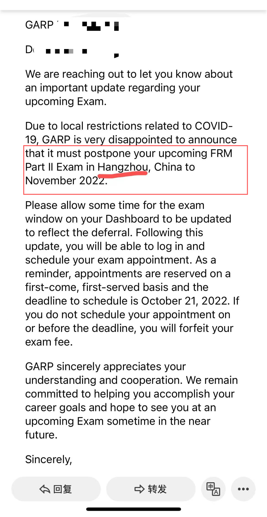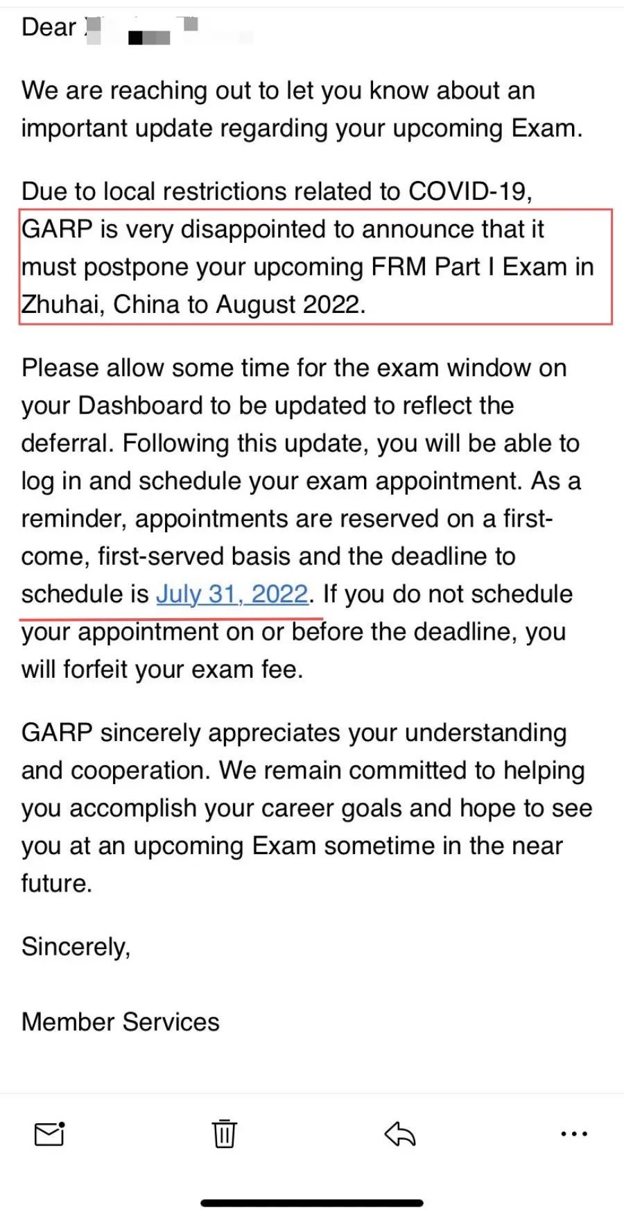 擔(dān)心了好幾天,今早FRM協(xié)會(huì)終于發(fā)布了通知:這次是真的官宣延期了??吹胶芏嗳豪锏男』锇槎挤浅ky受,復(fù)習(xí)了這么久,結(jié)果還是在考前被通知取消了考試,很多人都是兩次延期,再多的安慰話語在這次都顯得蒼白,金程網(wǎng)校帶著大家一起來解析一下FRM協(xié)會(huì)給到的考試延期通知和后續(xù)操作步驟,具體如下。