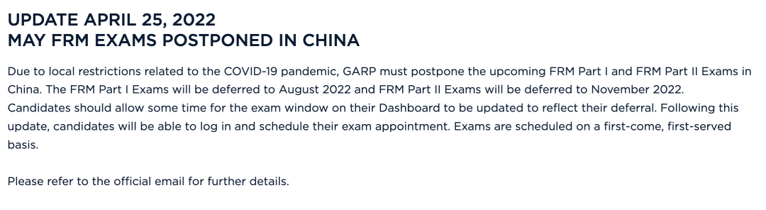 目前5月考生已被通知FRM考試延期,考生什么都不需要做,協(xié)會會自動在官網(wǎng)替你延期至相應(yīng)的考期(一級延期至8月考期,二級延期至11月考期)。很多人沒經(jīng)歷過延期,可能會一時間不知道怎么辦,金程網(wǎng)校提醒大家,F(xiàn)RM復(fù)習(xí)計劃不能停,具體如下。