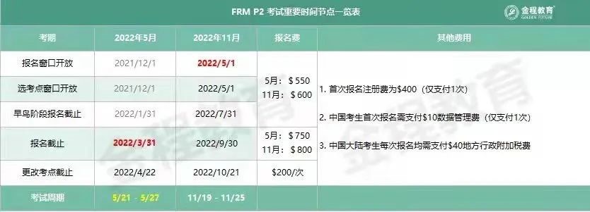 2022年FRM考試重要時間節(jié)點表