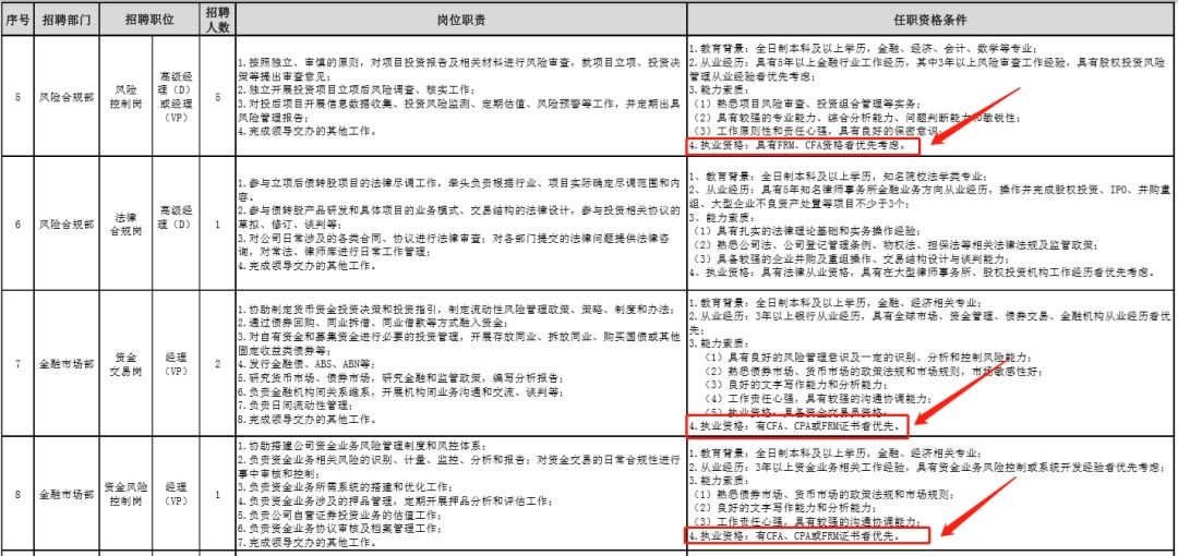 在金程往期的推文中,里面就介紹了中國(guó)銀行最近的招聘對(duì)于FRM人才的渴求,尤其是在某些高薪崗位上面點(diǎn)名直接要FRM的持證人!文內(nèi),許多招聘應(yīng)屆生的崗位都寫明了如果考過(guò)FRM,都是優(yōu)先錄取的!