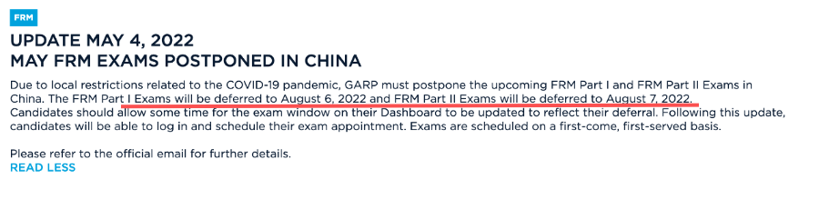 郵件回復(fù)肯定是官方的回答,不過(guò)建議大家后期還是要去官網(wǎng)檢查一下,看看是否延期到了自己想要的FRM考試時(shí)間。