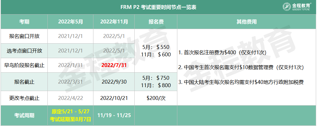 22年一級(jí)FRM考試報(bào)名節(jié)點(diǎn)表