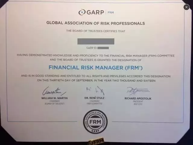 下面一起來看看中英文兩版FRM證書到底長啥樣!