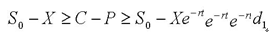 式期權(quán)買權(quán)和賣權(quán)的價(jià)格差區(qū)間為:,對(duì)于歐式期權(quán),c-p=S-X,所以美式期權(quán)如果沒有dividend的話,在到期日之前執(zhí)行不是的。如果不用支付dividends的時(shí)候,美式期權(quán)和歐式期權(quán)的價(jià)值是一樣的,這是因?yàn)樘崆皥?zhí)行期權(quán)都不是的方案,因?yàn)?,如果不提前?zhí)行期權(quán),期權(quán)的價(jià)值就是S-X,而執(zhí)行期權(quán)后,其價(jià)值就變成了S-X。如果支付股息的話情況就比較復(fù)雜了。支付股息時(shí),如果離到期日越近而且支付的股息越多,那么提前執(zhí)行買權(quán)就越好,而賣權(quán)卻相反,股息支付越大,越不要提前執(zhí)行。 .png)