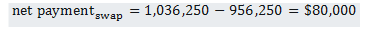 The current six-month LIBOR rate is 7.35% per annum. The notional principal is $25M. What is the net swap payment of Party A?