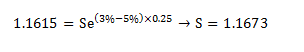 5. Assume that the forward rate of a 3-month EUR|USD foreign exchange contract is 1.1615 USD per EUR. What will the spot USD per EUR exchange rate be, while EUR LIBOR is 5% and USD LIBOR is 3%?