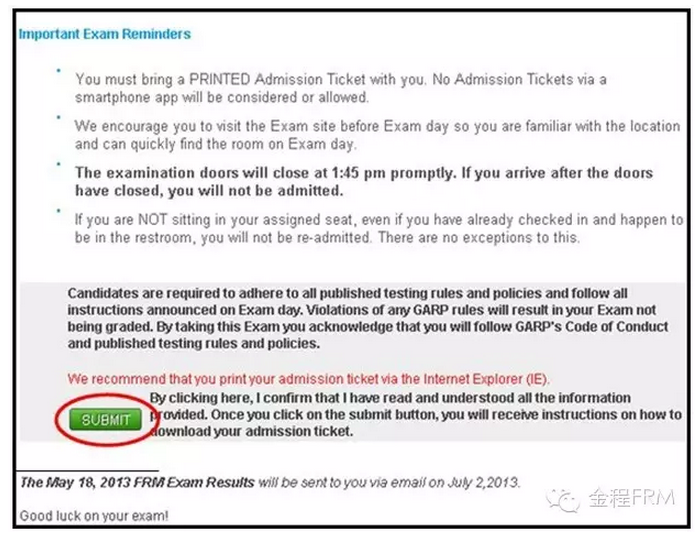 5.每年都會出現(xiàn)考生進入考場后,發(fā)現(xiàn)準(zhǔn)考證丟失或遺忘的情況。因此,F(xiàn)RM小編特別提醒,考生可打印兩張以上的FRM考試準(zhǔn)考證,以免準(zhǔn)考證丟失,影響考試。