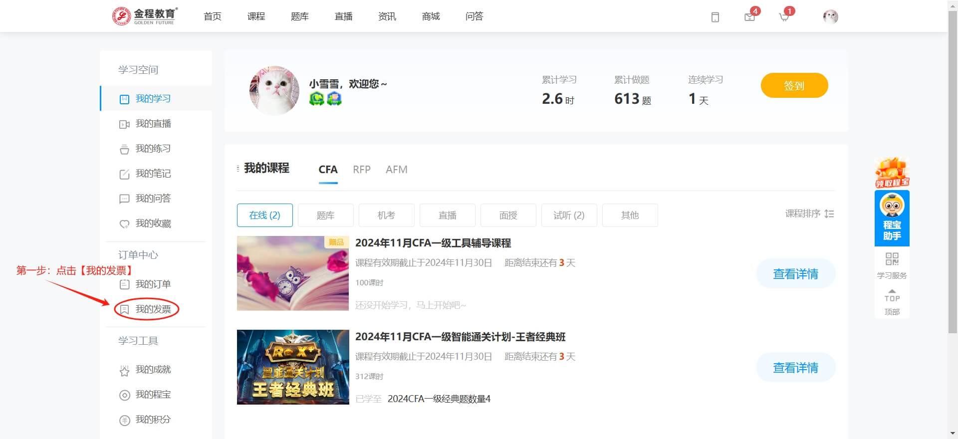 步驟一、進入“學習空間”,點擊“我的發(fā)票”