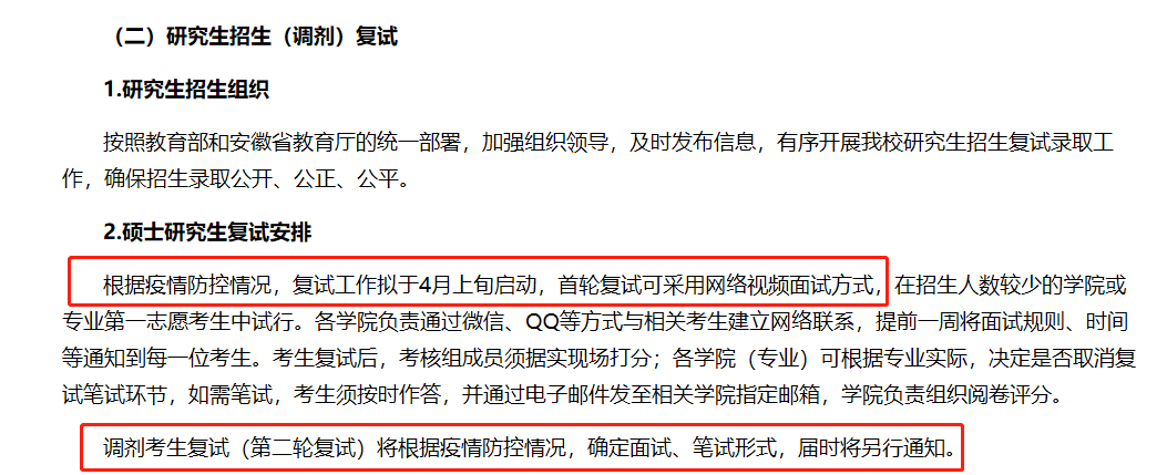安徽理工大學(xué)公告中聲明首輪復(fù)試可采用視頻面試方式。