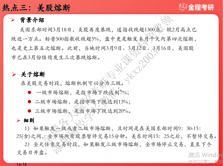 考研熱點(diǎn)對考研考生是非常重要的,2020金融熱點(diǎn)有哪些?金程考研小編整理了金融考研熱點(diǎn):美股熔斷,下面就是金融熱點(diǎn)的介紹~