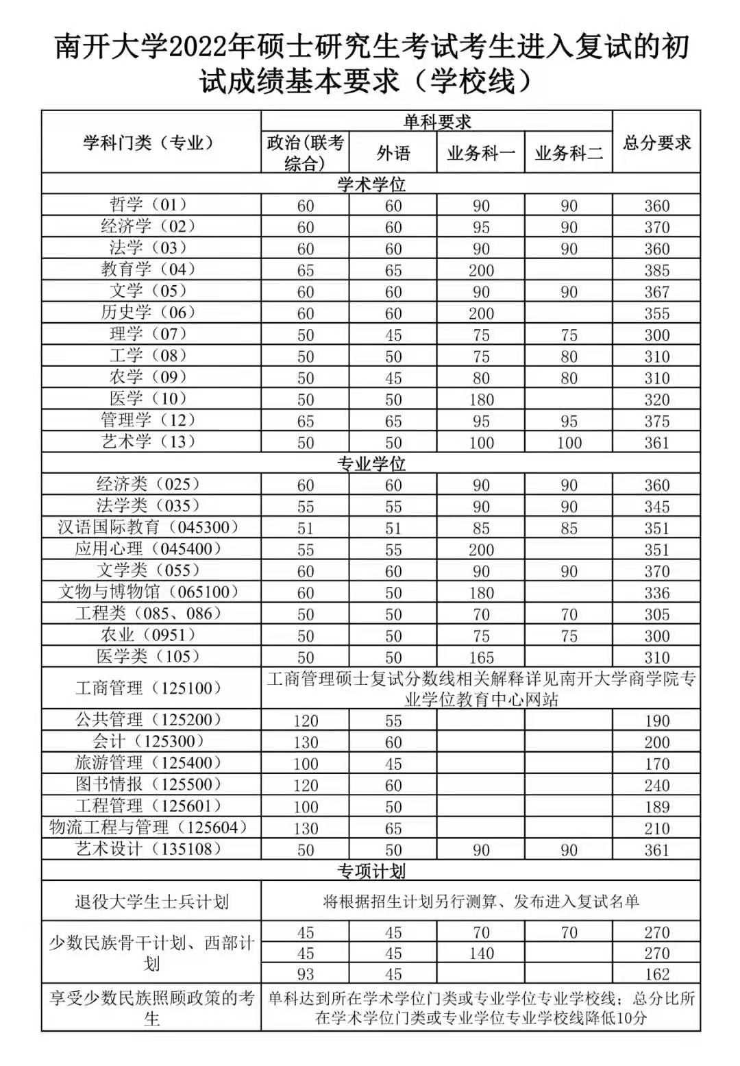2022年南開大學(xué)碩士研究生復(fù)試分?jǐn)?shù)線
