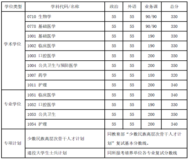 三、復(fù)試基本分?jǐn)?shù)線(醫(yī)學(xué)院)