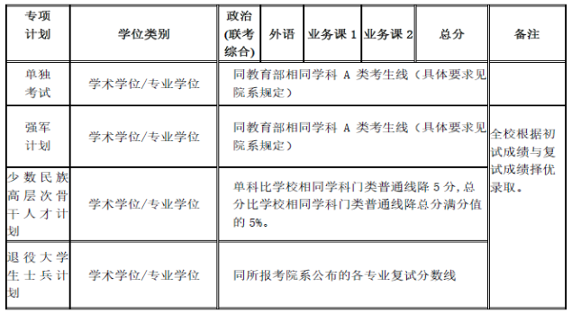 二、專項(xiàng)計(jì)劃復(fù)試分?jǐn)?shù)線(不含醫(yī)學(xué)院)