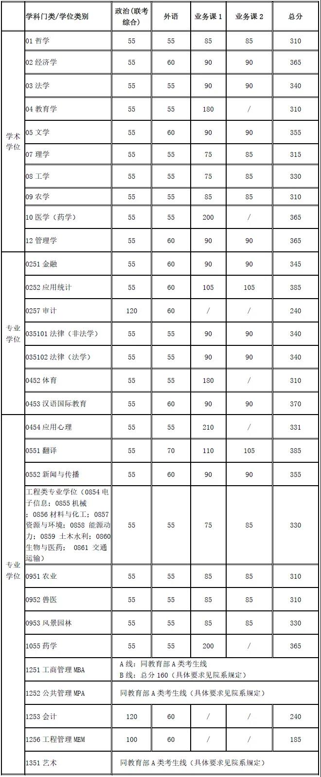 一、復(fù)試基本分?jǐn)?shù)線(不含醫(yī)學(xué)院)
