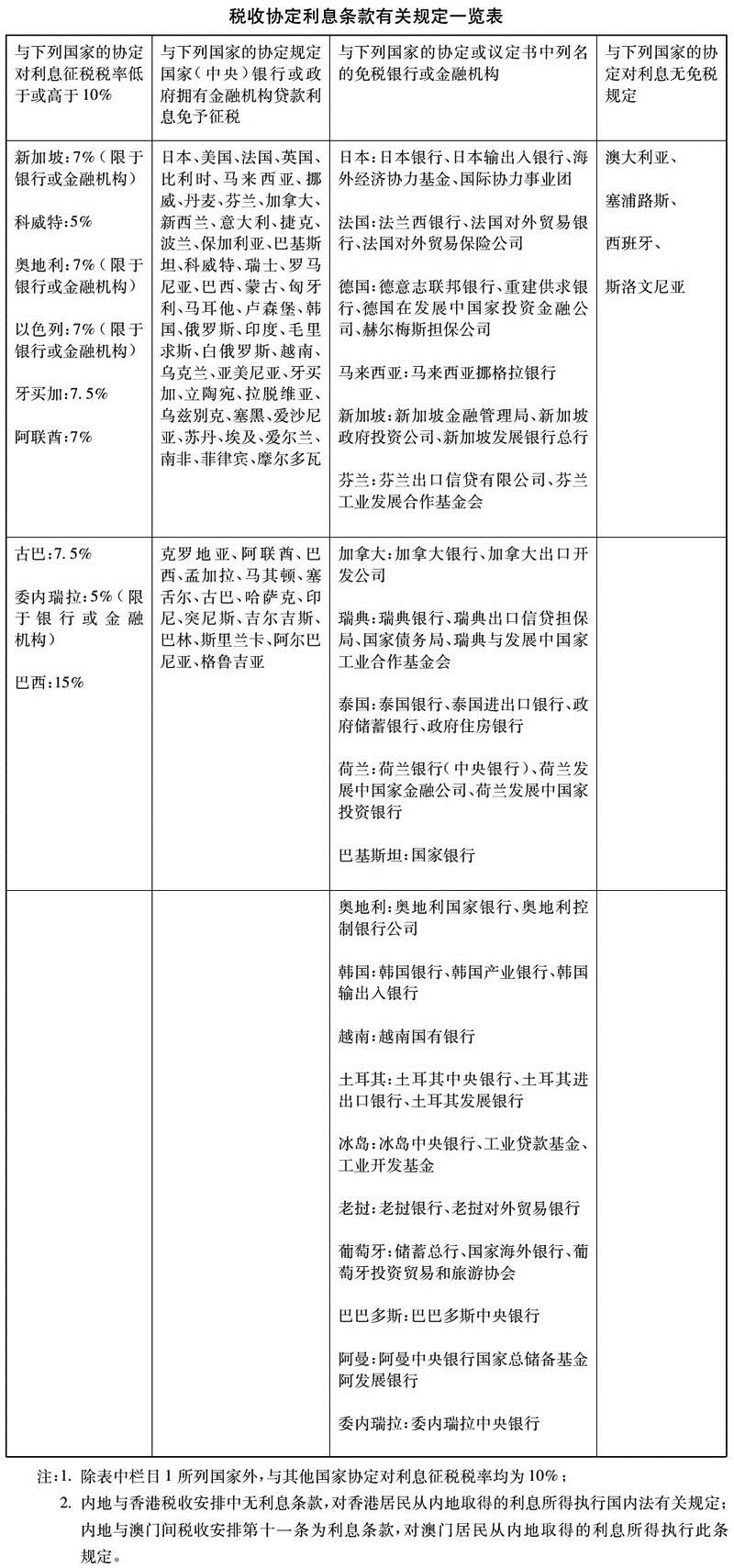 附件:稅收協(xié)定利息條款有關規(guī)定一覽表