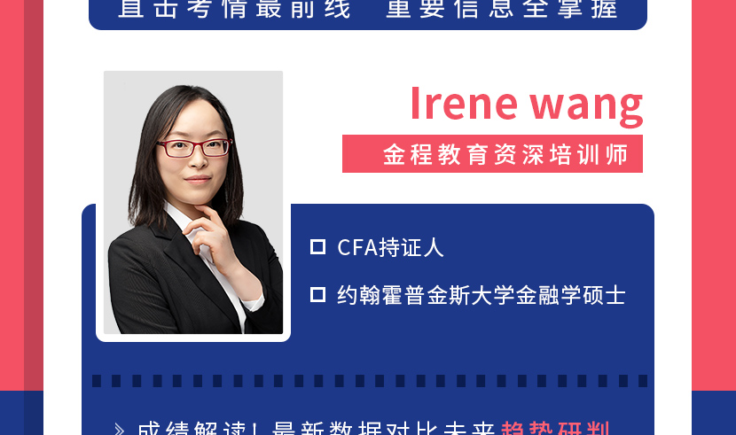 金程教育資深培訓師、CFA持證人、FRM持證人、CFA SIC持證人、美國約翰霍普金斯大學金融學碩士。