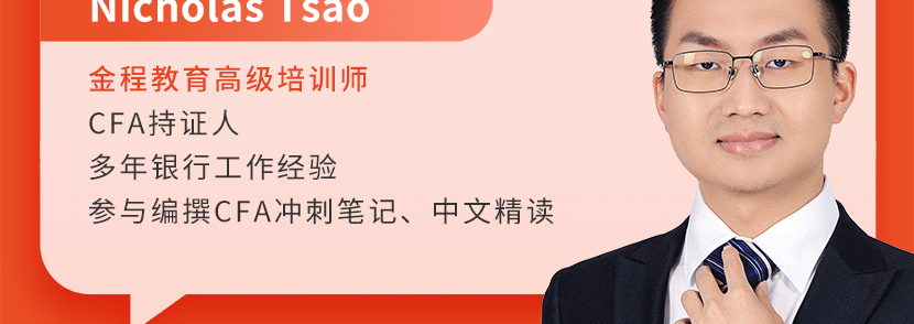 金程教育高級培訓(xùn)師,CFA持證人,有多年銀行工作經(jīng)驗。參與編寫CFA全級別沖刺筆記,參與編撰CFA二、三級中文精讀。