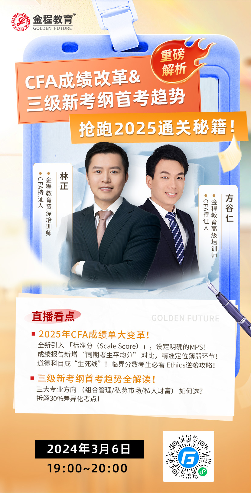金程教育資深培訓(xùn)師,CFA/PMP持證人。曾任外資銀行總行項(xiàng)目經(jīng)理和支行行長,有十余年外資銀行工作經(jīng)驗(yàn)。