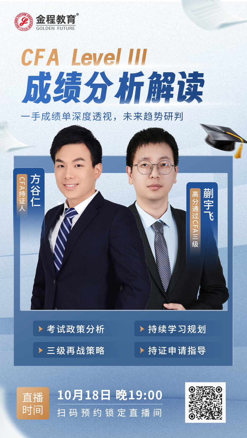 金程教育高級培訓師,CFA持證人,學術功底深厚,以全球前10%的成績通過CFA三個級別考試并以全1成績通關FRM考試。