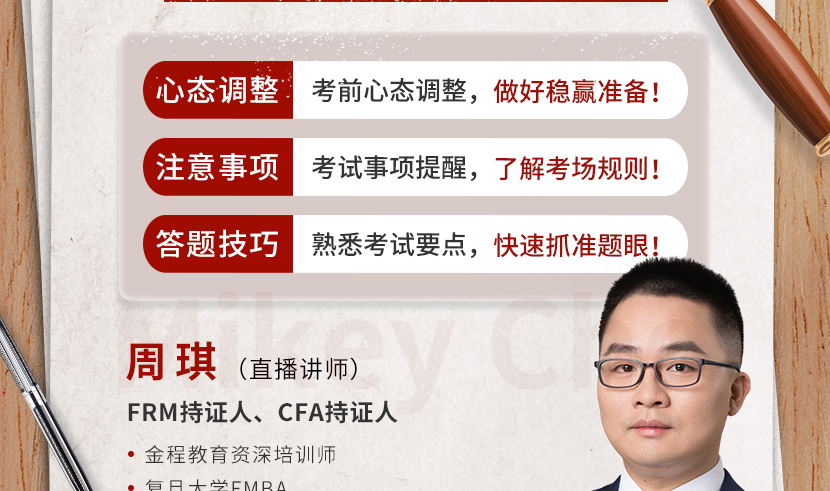 金程教育資深培訓(xùn)師、CFA/FRM持證人、CFA SIC持證人、中央財經(jīng)大學(xué)經(jīng)濟(jì)學(xué)學(xué)士、復(fù)旦大學(xué)FMBA。