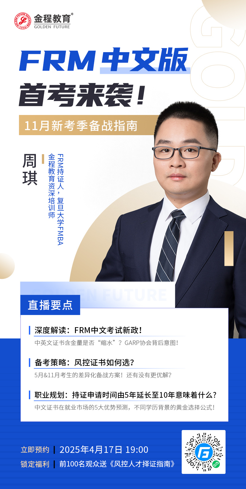 金程教育資深培訓(xùn)師、CFA/FRM持證人、CFA SIC持證人、中央財(cái)經(jīng)大學(xué)經(jīng)濟(jì)學(xué)學(xué)士、復(fù)旦大學(xué)FMBA。