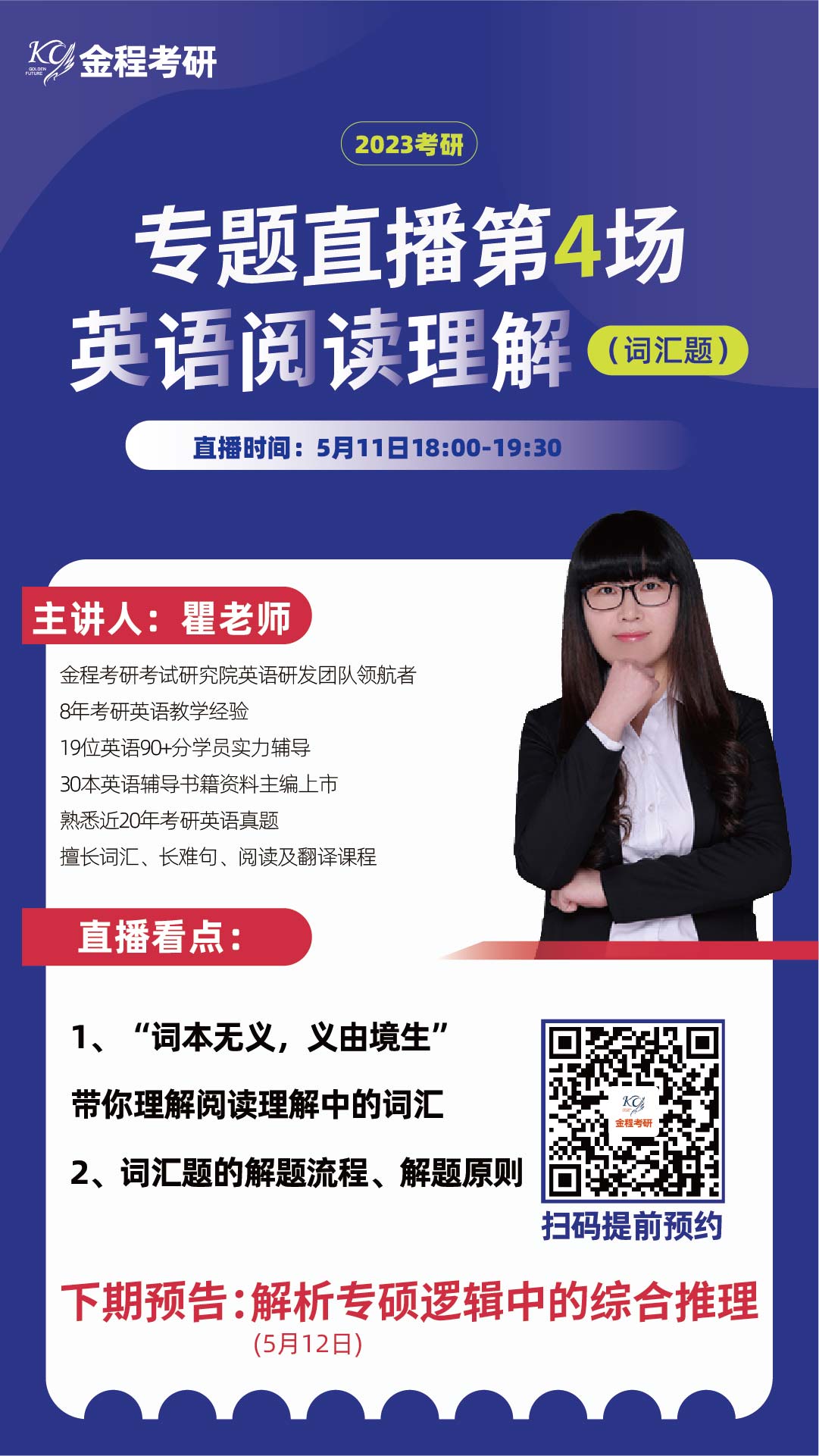 授課領(lǐng)域:考研英語;擅長詞匯、長難句、閱讀,金程考研英語學科帶頭人/講師