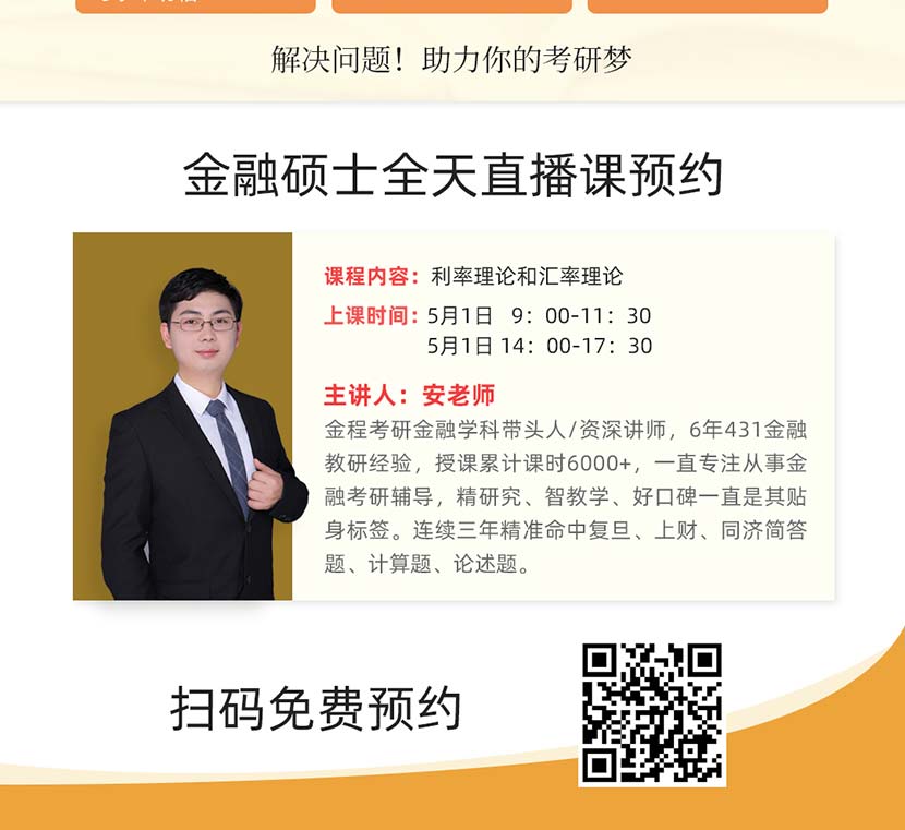 金程考研金融考試研究院總負(fù)責(zé)人,“宏觀10小時(shí)”學(xué)習(xí)法開創(chuàng)者。8年宏觀金融教學(xué)經(jīng)驗(yàn),截至目前組織編撰包括金融碩士(MF)通關(guān)寶系列3件套(復(fù)習(xí)全書/真題/習(xí)題)在內(nèi)的出版物,以及高分寶4件套等教輔資料30余本。
