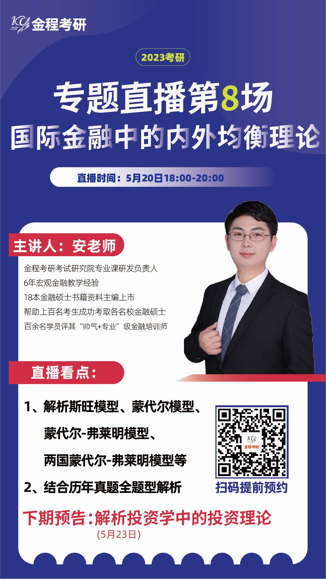 金程考研金融考試研究院總負責人,“宏觀10小時”學習法開創(chuàng)者。8年宏觀金融教學經(jīng)驗,截至目前組織編撰包括金融碩士(MF)通關(guān)寶系列3件套(復習全書/真題/習題)在內(nèi)的出版物,以及高分寶4件套等教輔資料30余本。