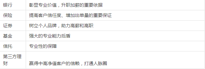 RFP內容是全面理財規(guī)劃,涵蓋比較全面,且投產(chǎn)比較高,因為它更注重的理論基礎上的實操,理財類證書和課程,主要是兩點,一點是證書本身,第二點是證書衍生出來的價值。從學習后延伸出來的學習機會和提升機會來看,RFP更落地,更務實。