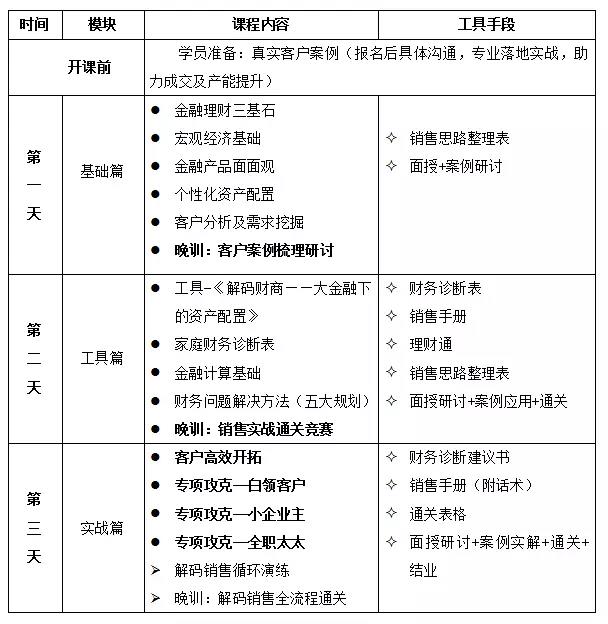 直擊中產(chǎn),通過理念溝通、需求分析、方案呈現(xiàn)、銷售實(shí)戰(zhàn),讓金融理財(cái)更實(shí)用,助力實(shí)現(xiàn)客戶更優(yōu)、團(tuán)隊(duì)更強(qiáng)、產(chǎn)能更高!
