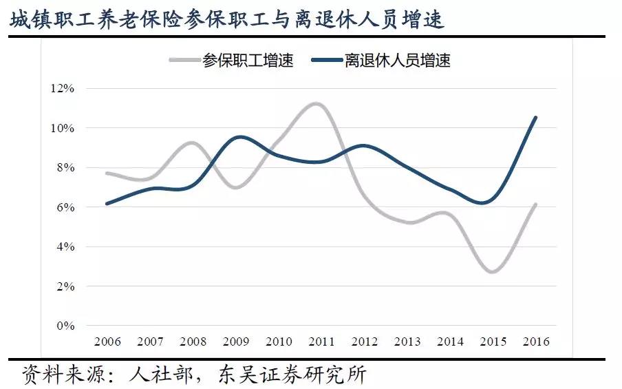 自 2012 年起,離退休 人員增速持續(xù)高于參保職工增速,未來人口老齡化加速將使基本養(yǎng)老保險(xiǎn) 的資金缺口進(jìn)一步擴(kuò)大。