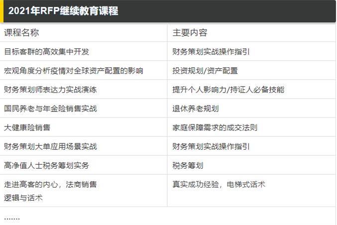 2021年RFP繼續(xù)教育課程
