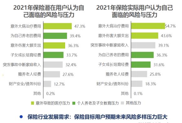 對于當前保險核心目標用戶——80、90后群體而言,他們不僅要面對疾病、意外等帶來的風險,同時還要逐步承擔子女教育、贍養(yǎng)老人的責任,社會角色的交替,使他們對現(xiàn)有及未來的壓力更加敏感。近一半的保險目標群體對疾病和意外的治療費用表示擔心,此外他們對于自己養(yǎng)老支出的擔憂遠大于對贍養(yǎng)父母支出的擔憂。
