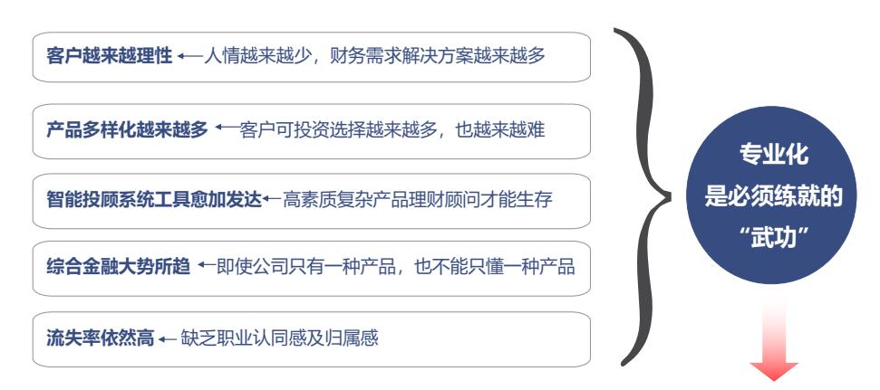 不拘泥于保險,還必須具備理財、養(yǎng)老、法律、稅務等綜合知識,能夠在全方位理財規(guī)劃的基礎上,以客戶需求為導向為客戶提供覆蓋全生命周期的保險規(guī)劃;同時,借由專業(yè)提高保險職業(yè)認同感。