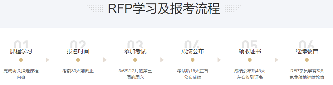 以上是小編整理的RFC與RFP報(bào)名流程,另外同學(xué)們注意啦,介于RFP的特殊性,不接受個(gè)人報(bào)名,需要通過(guò)正規(guī)的RFP機(jī)構(gòu)培訓(xùn)后才能報(bào)名參加考試。