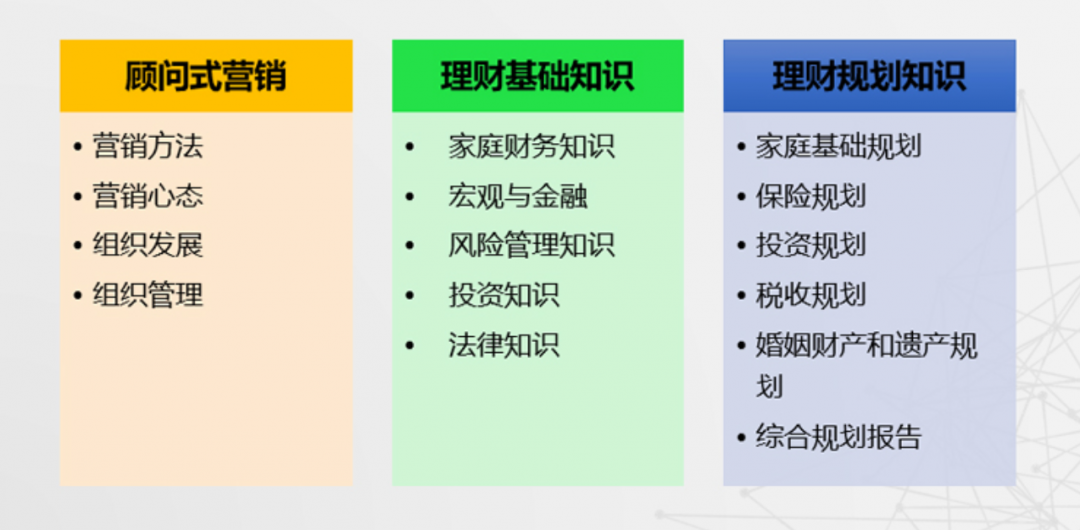 要成為專業(yè)的理財(cái)師,我們需要一套完整的知識體系。在這里節(jié)選某理財(cái)書中的一套知識體系: