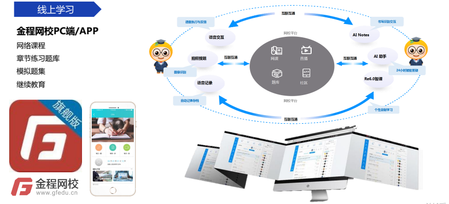非考證類在線培訓服務,以及企業(yè)咨詢和機構定制培訓服務。堅持“專業(yè)·創(chuàng)新·增值”的經營理念,金程教育借助互聯網技術平臺,匯聚優(yōu)質教育資源,為學員、企業(yè)和行業(yè)提供教學產品、智能學習系統、人
