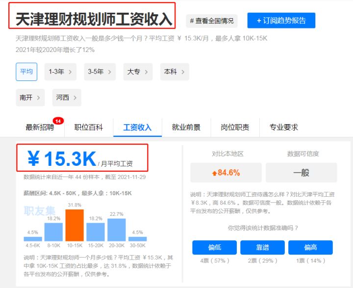 一位天津的小伙伴詢問,現(xiàn)在天津的理財規(guī)劃師月薪一般是多少?小編通過各大招聘網(wǎng)查詢了去年的天津理財規(guī)劃師的收入,供這位同學(xué)參考一下:
